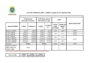 Note : Une campagne pour le calcul du quotient familial sera réalisée prochainement.