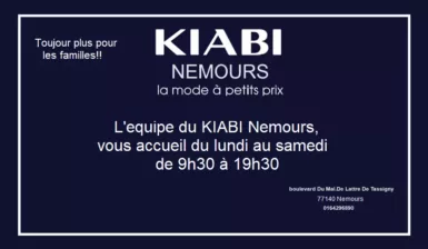 Votre magasin KIABI Nemours vous accueil du lundi au samedi de 9h30 à 19h30